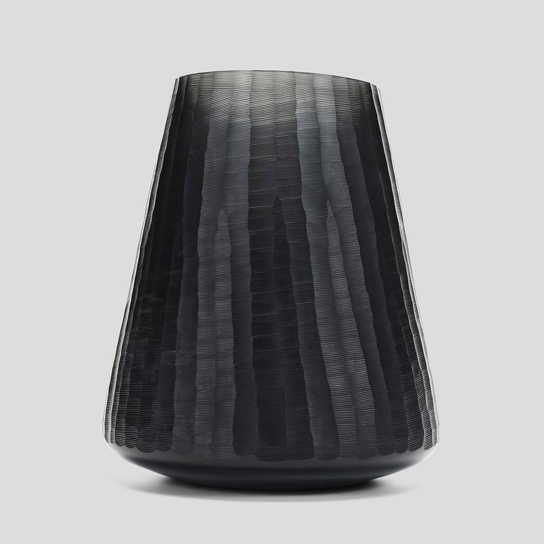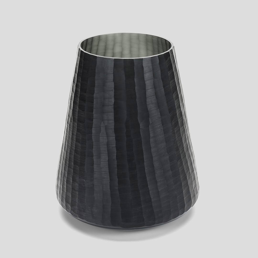 Clear glass vase with distorted green reflections
