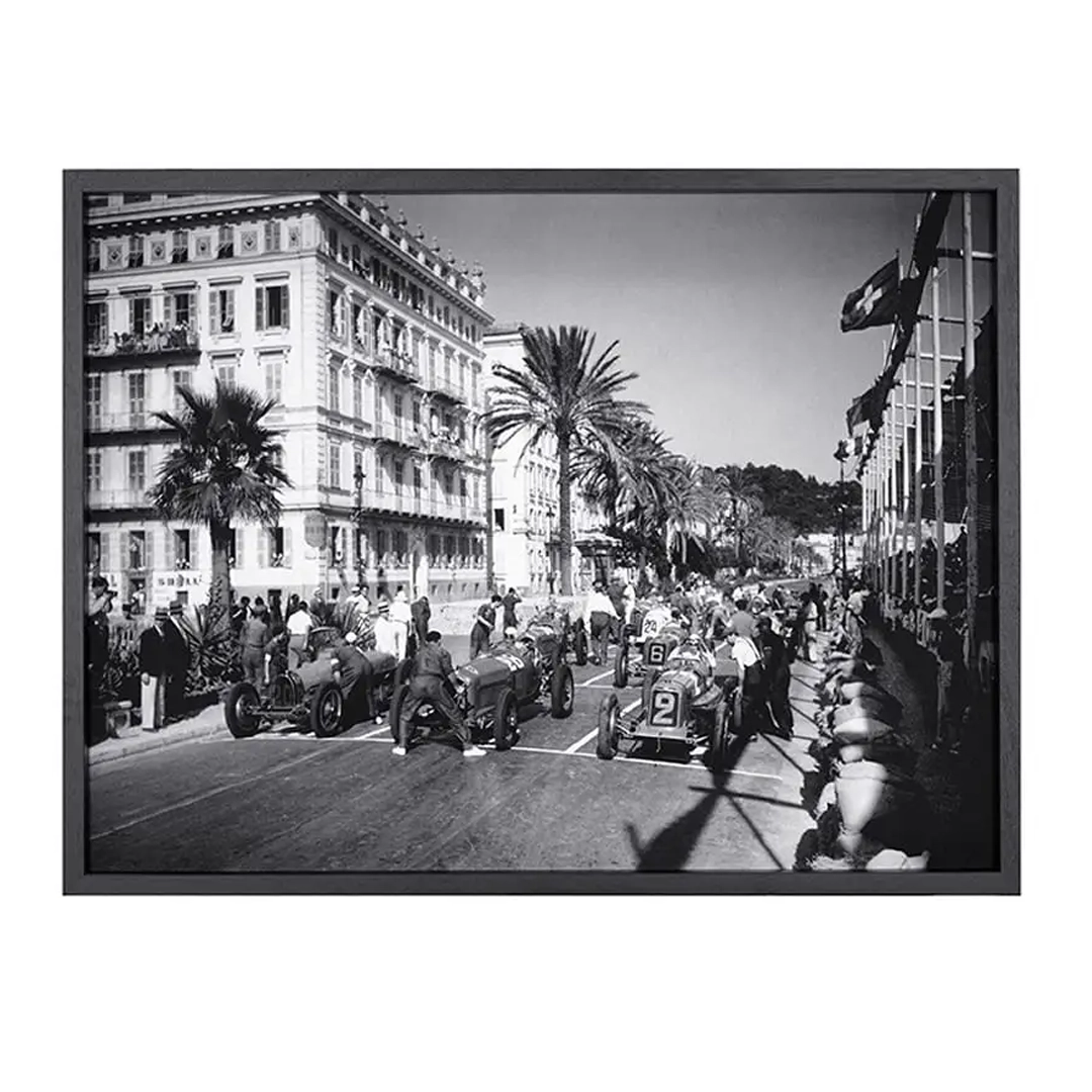 Framed photo of car emblem, horse silhouetteModern room with framed luxury car logo artwork