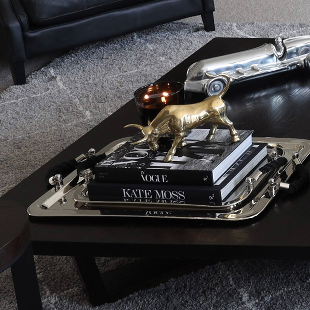 Elevate your entertaining with the Hollywood Tray – Medium, a refined statement piece that blends glamour with everyday functionality. Crafted with a sleek nickel finish and complemented by distinctive black rope handles, this tray brings a sophisticated edge to any setting—whether styled on a coffee table, bar, or used for serving guests