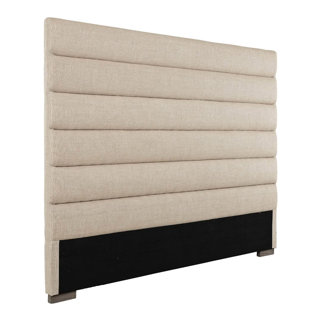 A padded linen headboard combines sophisticated design with comfort. The decorative horizontal stitching provides a sleek and modern look that elevates your bedroom. The soft linen texture creates an inviting feel, while the padding offers extra comfort for reading or relaxing in bed. Oak legs. Perfectly suited for both classic and modern bedroom environments.