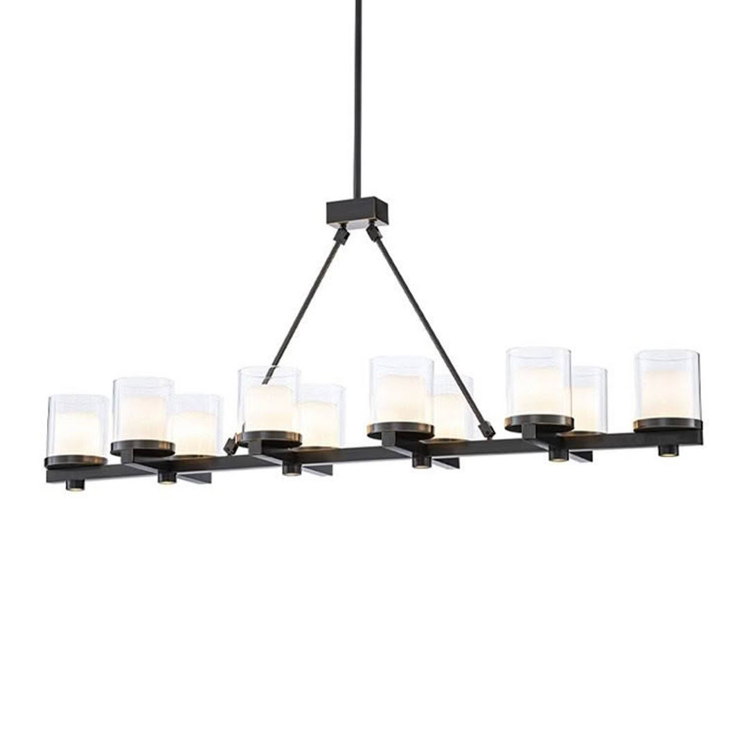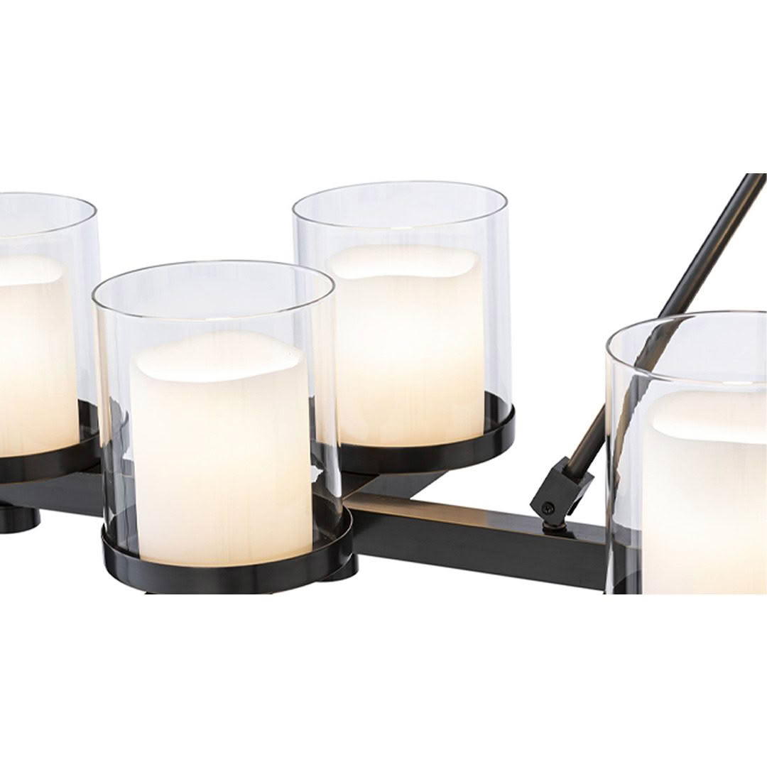 Perfect for hanging over a dining table or kitchen island, Chandelier Donovan pairs a handsome look with functional yet atmospheric lighting. Provided with an antique brass finish, this lovely lamp comes with ten clear glass cylindrical shades including faux candles with LED lights and a remote control.