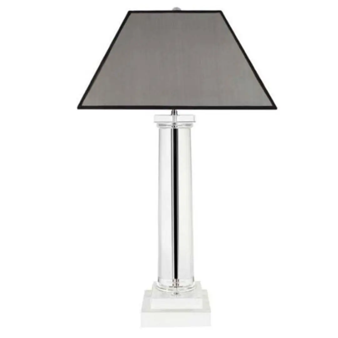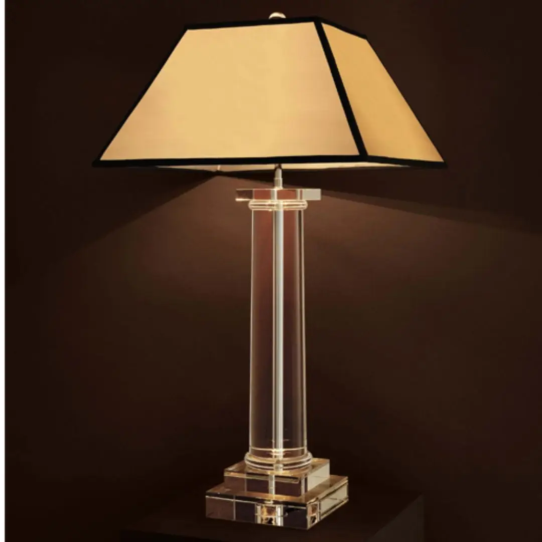 Modern rectangular table lamp with black shade and baseElegant living room with textured walls and modern decor