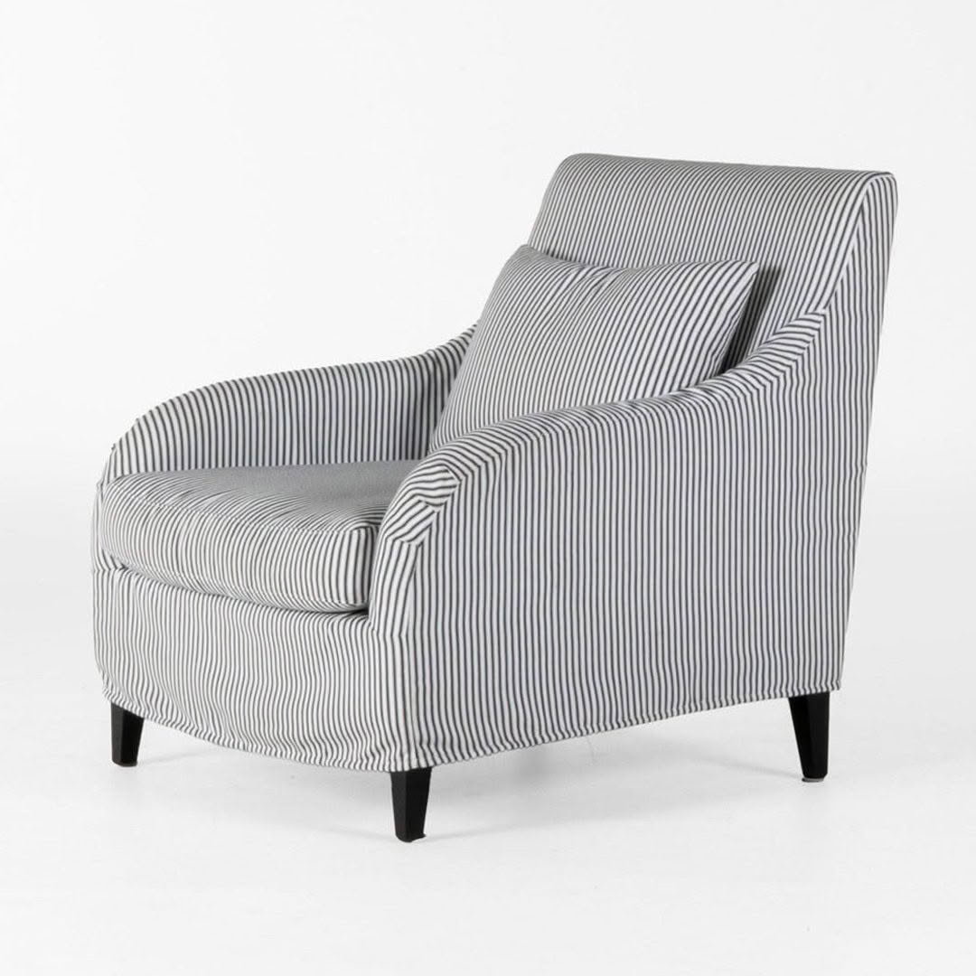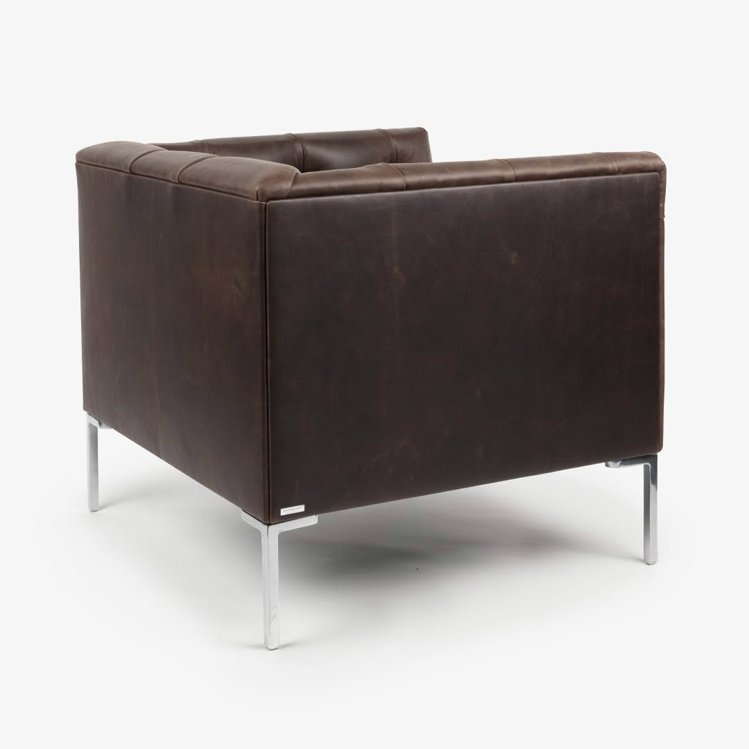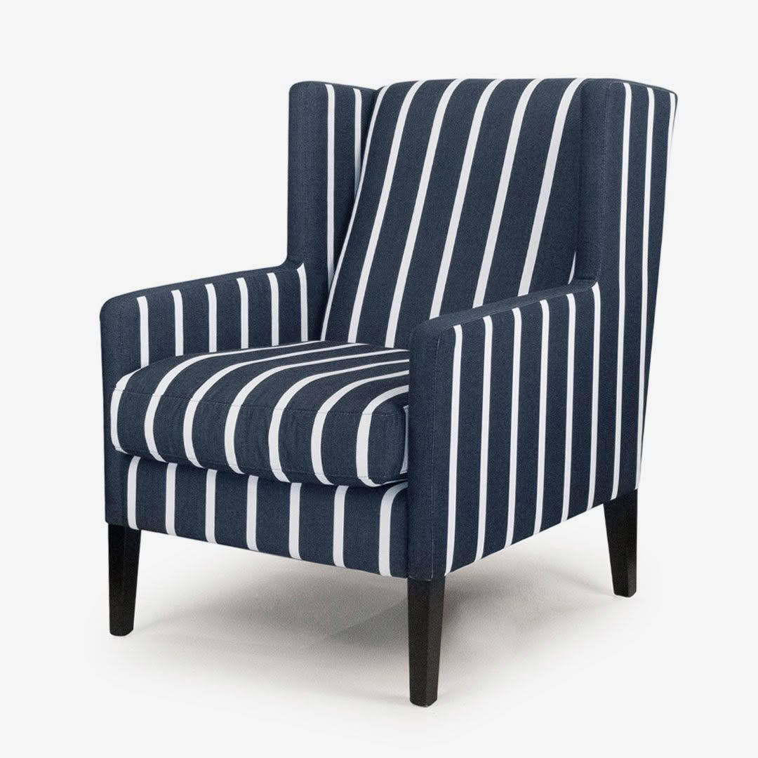 Glass coffee table on ornate orange carpet with teapot setMinimalist office with abstract blue painting and wooden chair