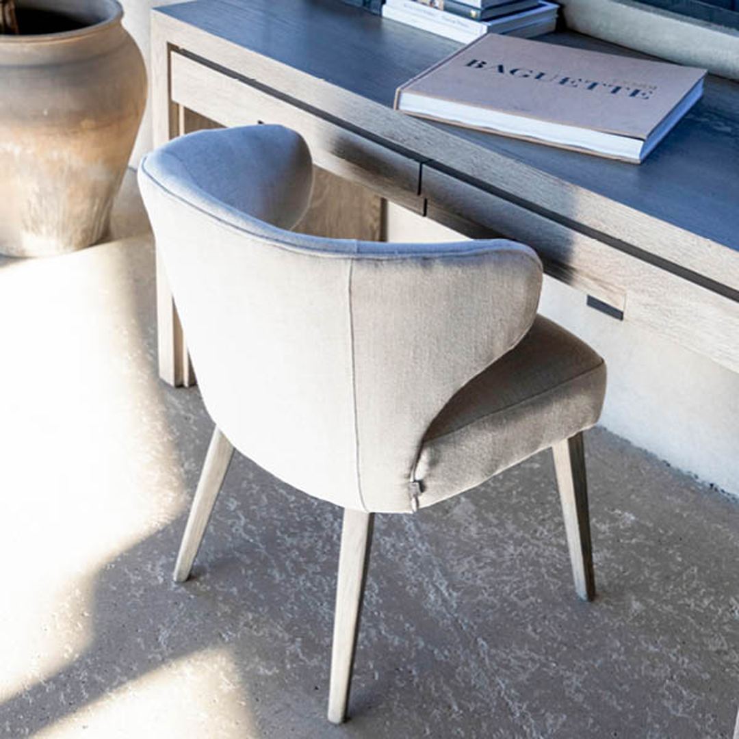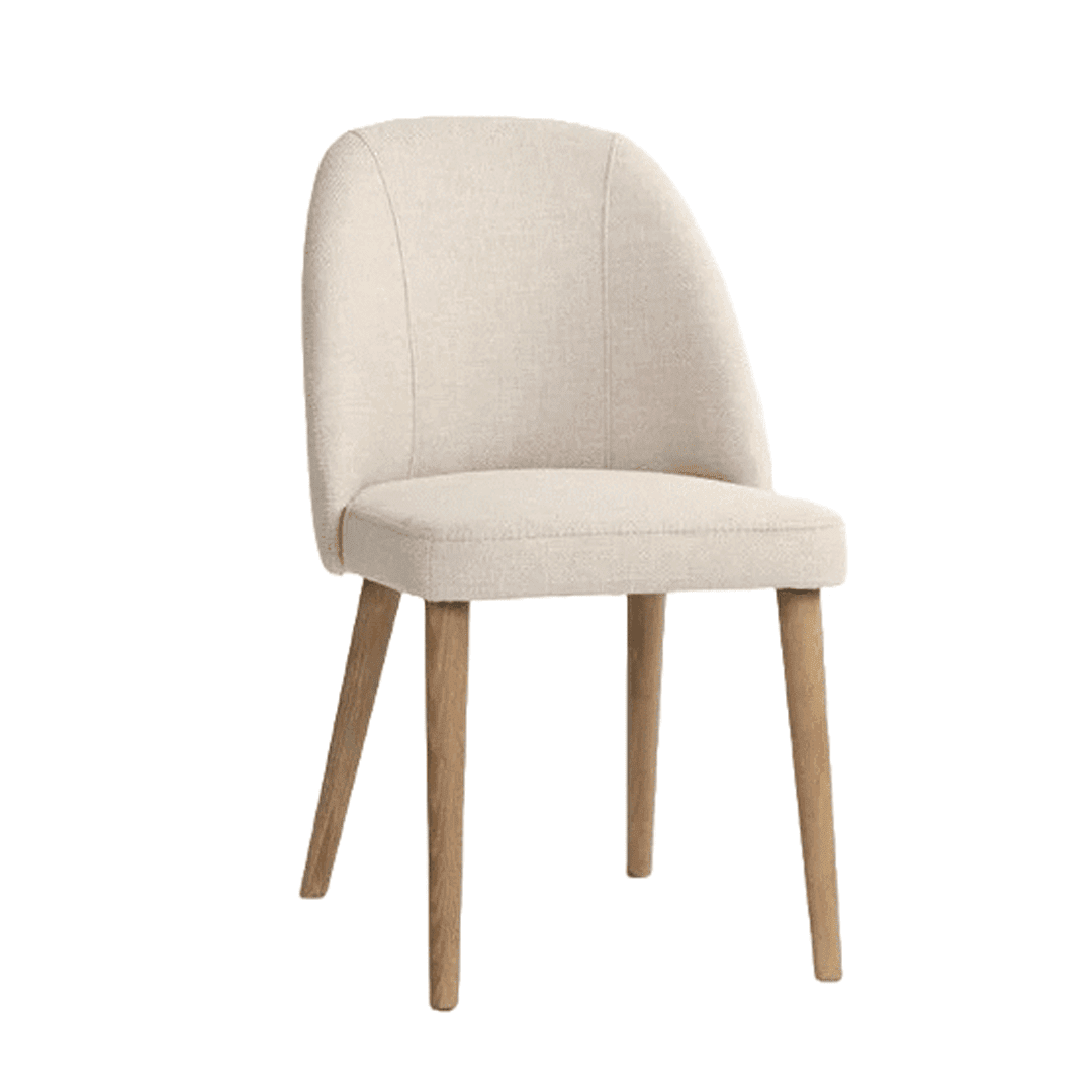 Modern wooden chair with white cushions indoor