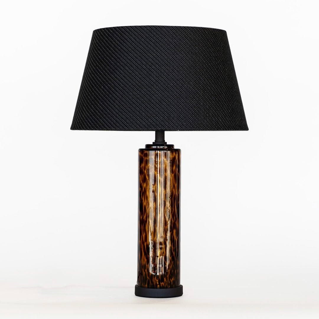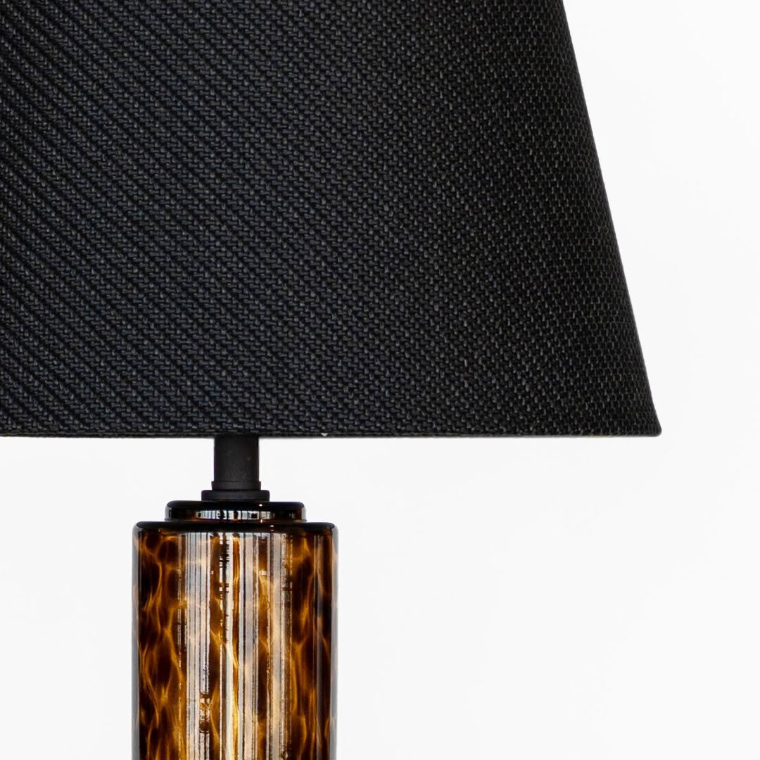 Tall black floor lamp with exposed bulb