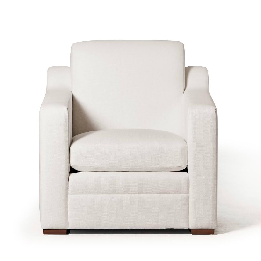 Elegant high-back beige wing chair with dark wooden legsElegant white wingback chair with dark wooden legs