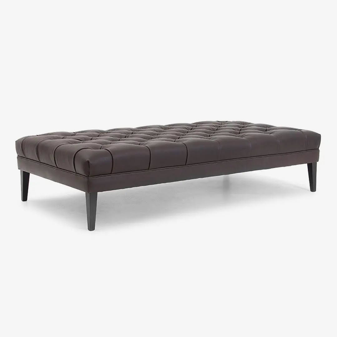 Beige tufted leather loveseat with sleek metal legs