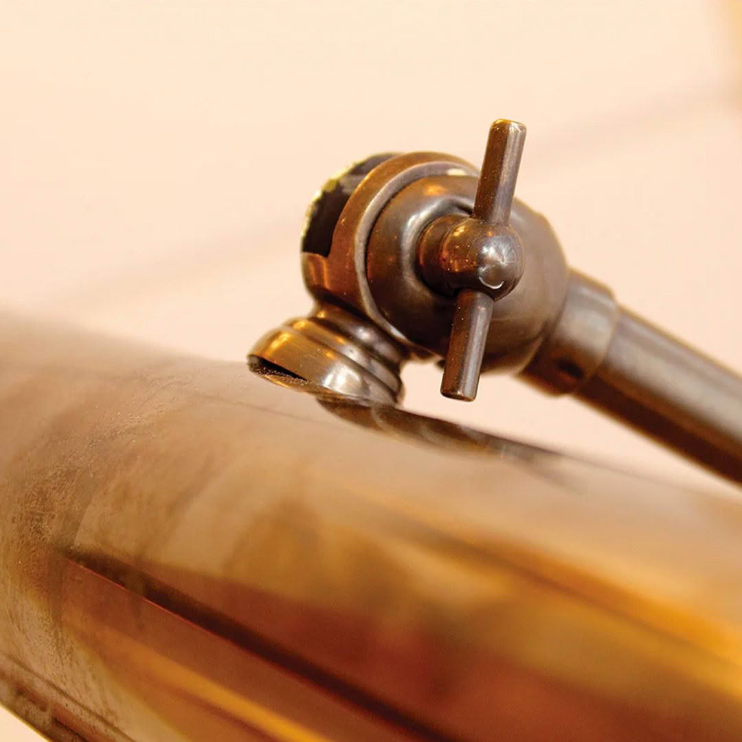 The Rubens Wall on Fixed Arm is a classic picture light crafted in solid brass, available in bronze, brushed nickel, or chrome finishes.