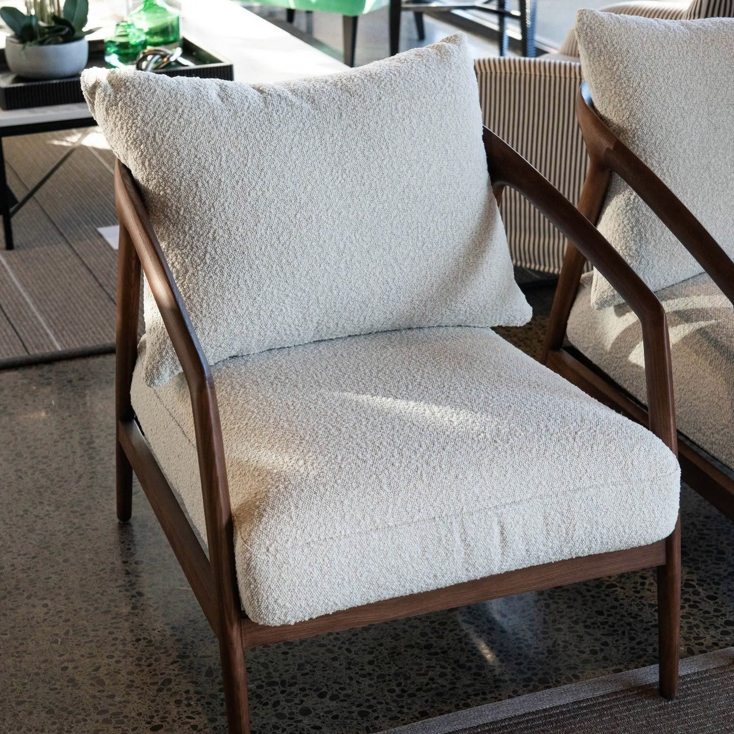 Introducing the stunning Soho Armchair with its rich timber frame and luxurious textured upholstery, it’s the perfect blend of sculptural elegance and cozy comfort. A modern classic that elevates any space with ease.