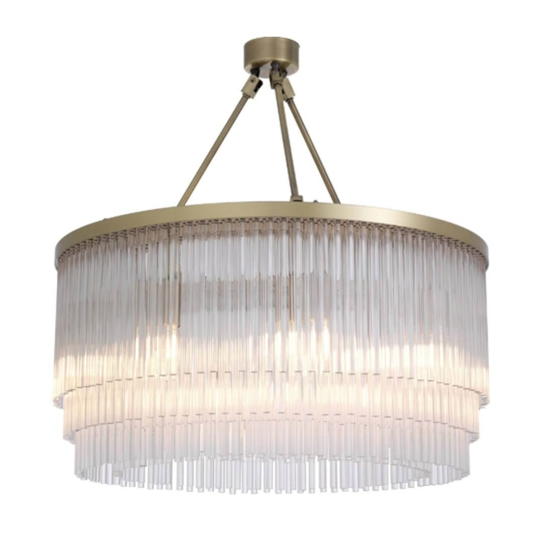 Invite the gorgeous aesthetic of the Tiziano Lantern into your home. By pairing vintage-inspired lattice and finials with contemporary design, this refined pendant lamp exudes timeless appeal. The antique brass finish drum shade features hand sculpted glass rods.