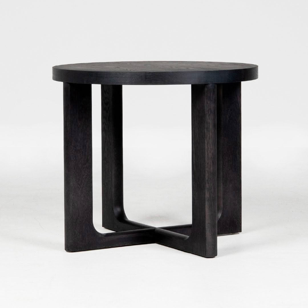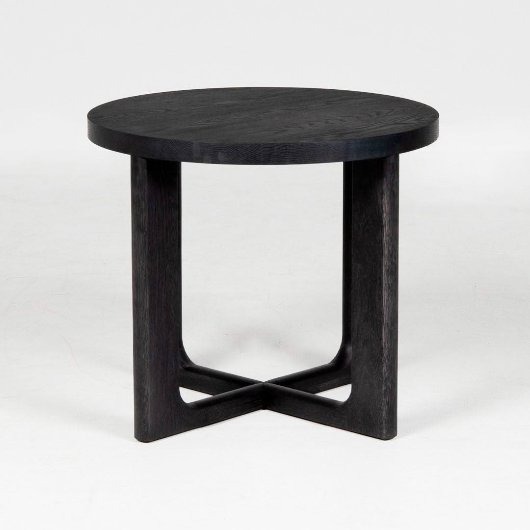 Black textured wooden side table isolated on whiteBlack modern textured nightstand with crisscross legs