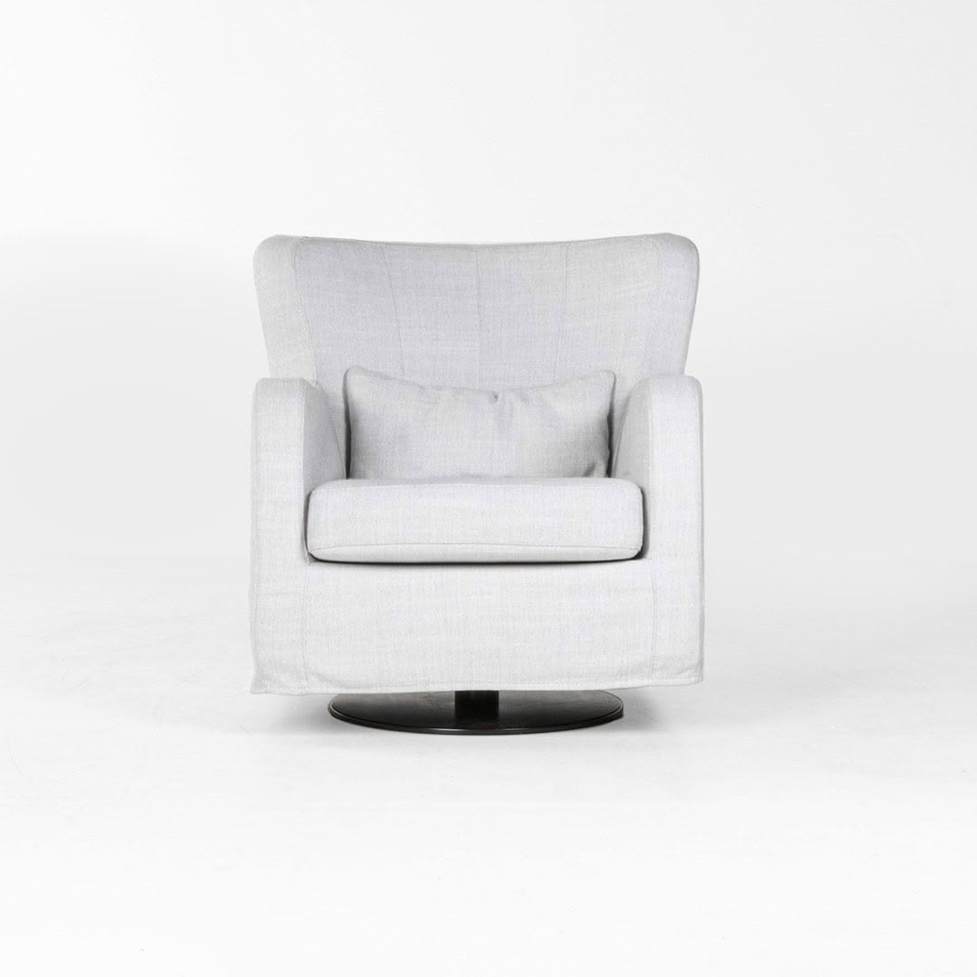 Elegant white fabric armchair isolated on white backgroundElegant white wingback chair with cushion