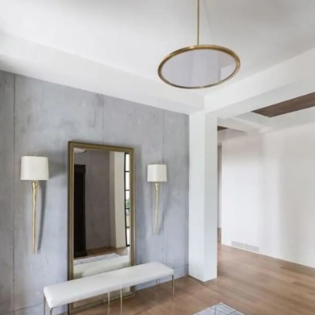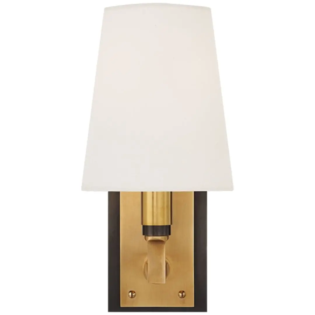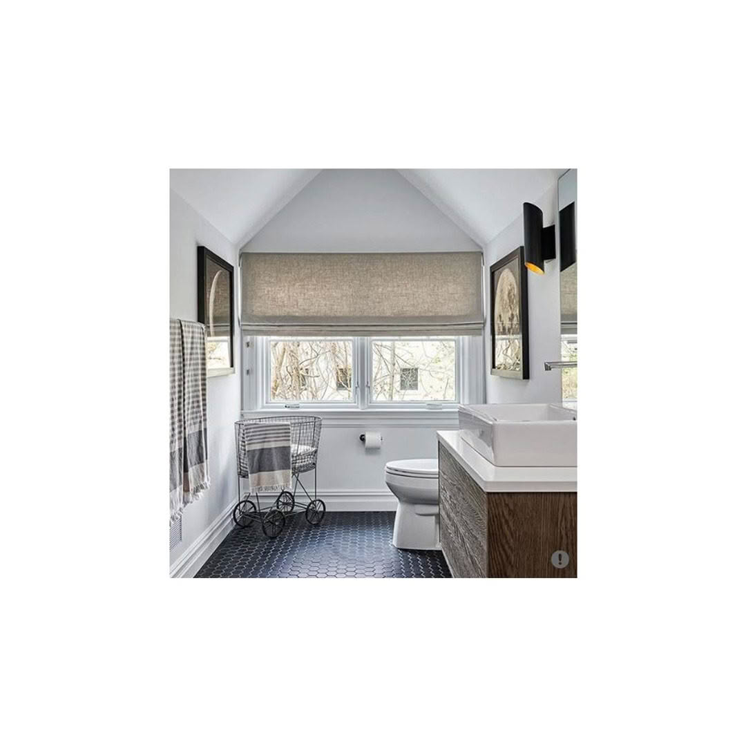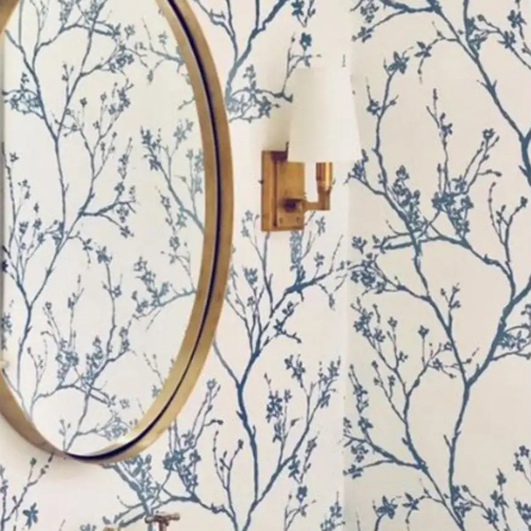 Modern wall-mounted lamp with square baseElegant bathroom with floral wallpaper and gold fixtures