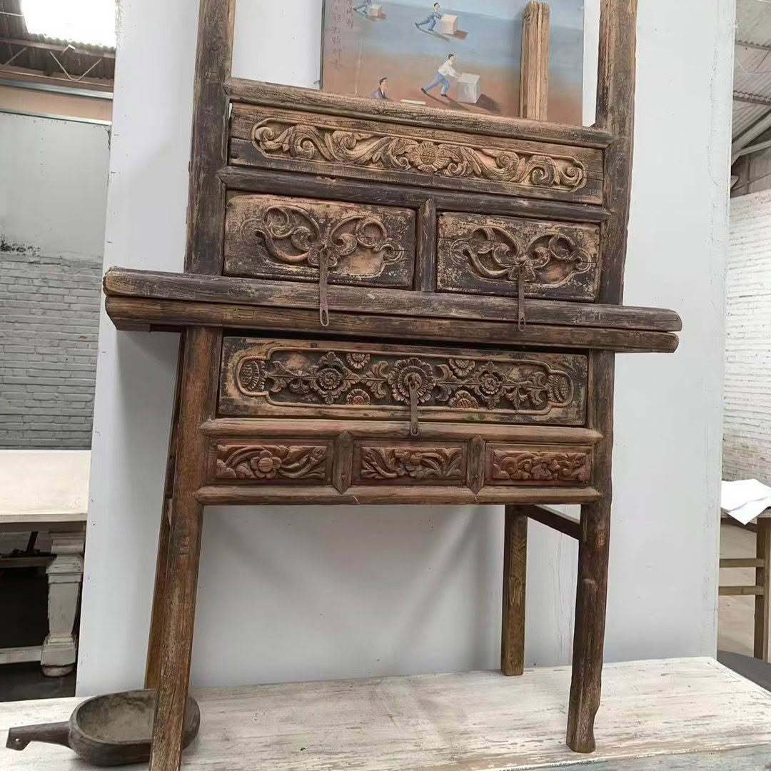 Elevate your space with this extraordinary Antique Cabinet — a piece that blends historical elegance and sculptural presence. This Table hails from the heart of Shanxi province and is fashioned entirely from well-seasoned elm wood.
