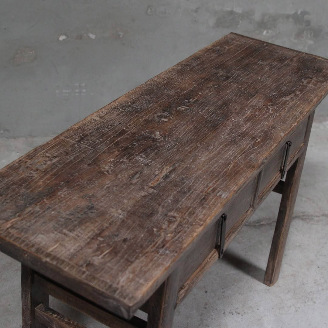 Elevate your space with this extraordinary Antique 430925 Shanxi table — a piece that blends historical elegance and sculptural presence. This Table hails from the heart of Shanxi province and is fashioned entirely from well-seasoned elm wood.