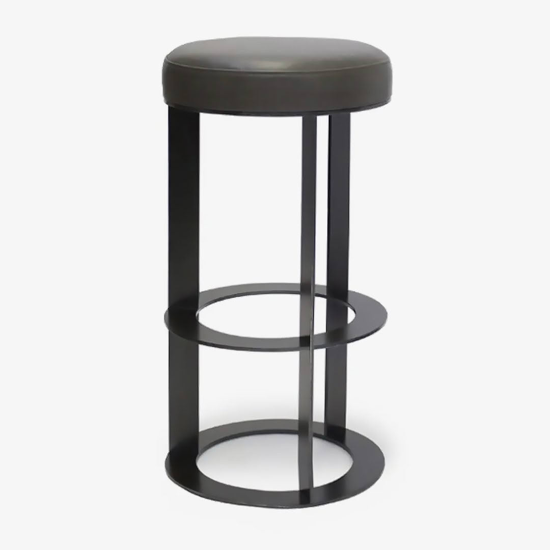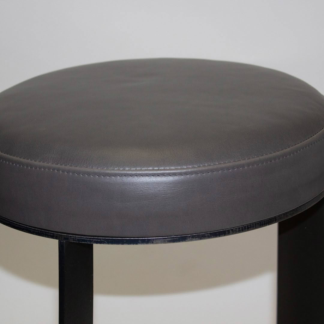 Ted Barstool is an elegant design with a round seat, Blue gun steel base with 3 legs. Tailor made in New Zealand in your choice of fabric or leather.