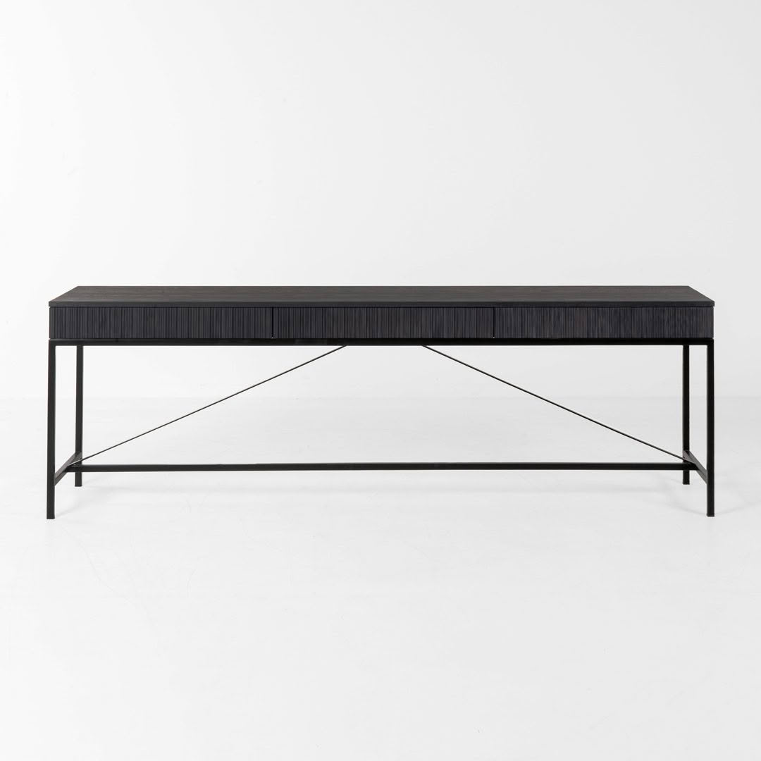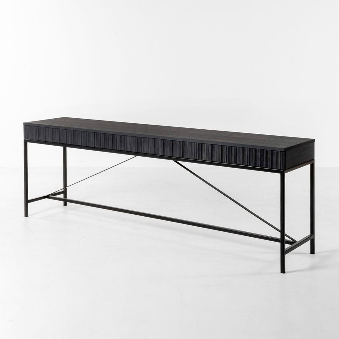 Black modern dining table with ribbed detailModern black console table with tapered legs