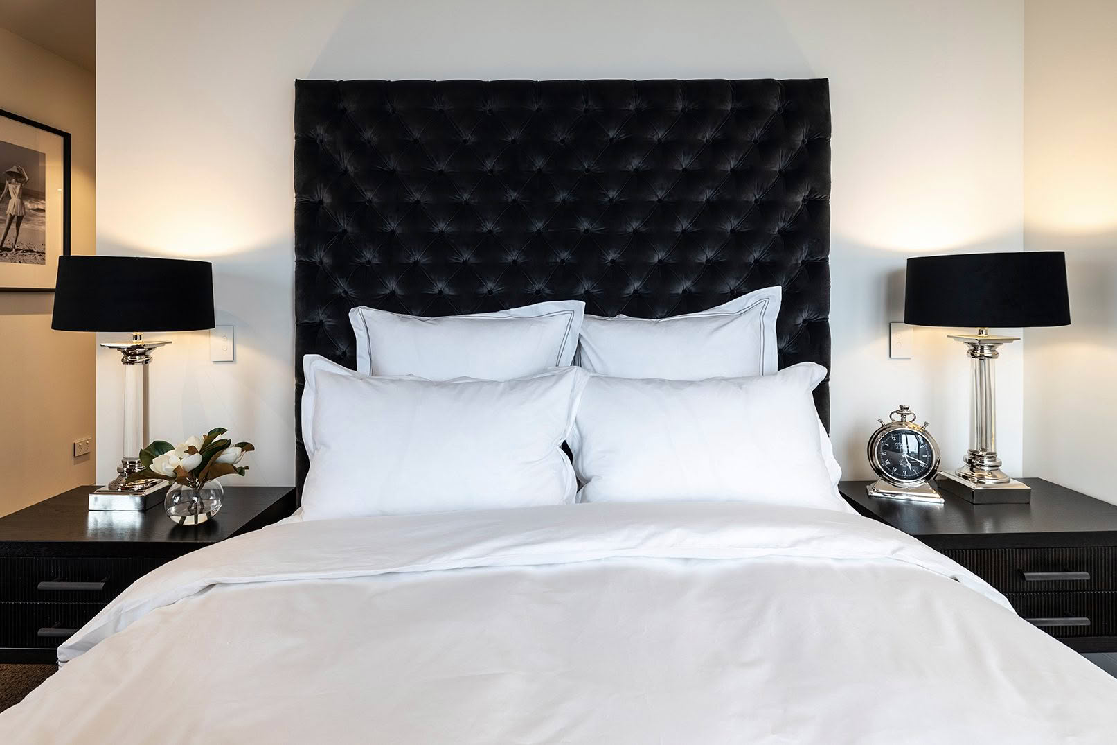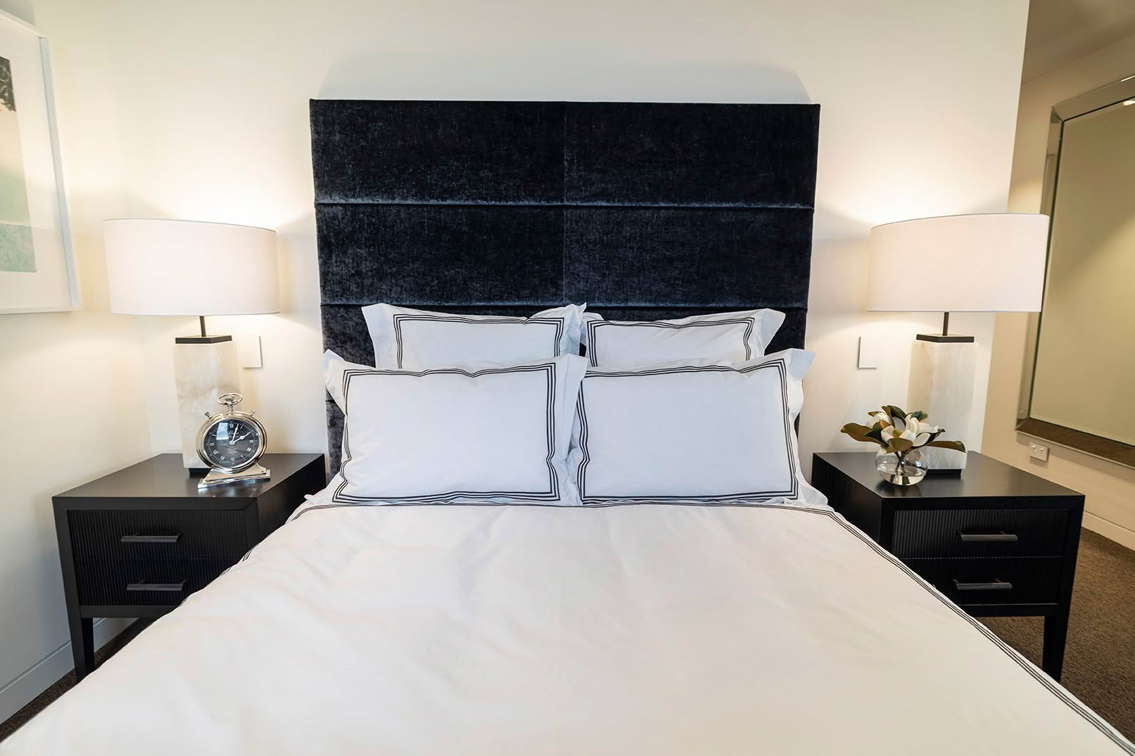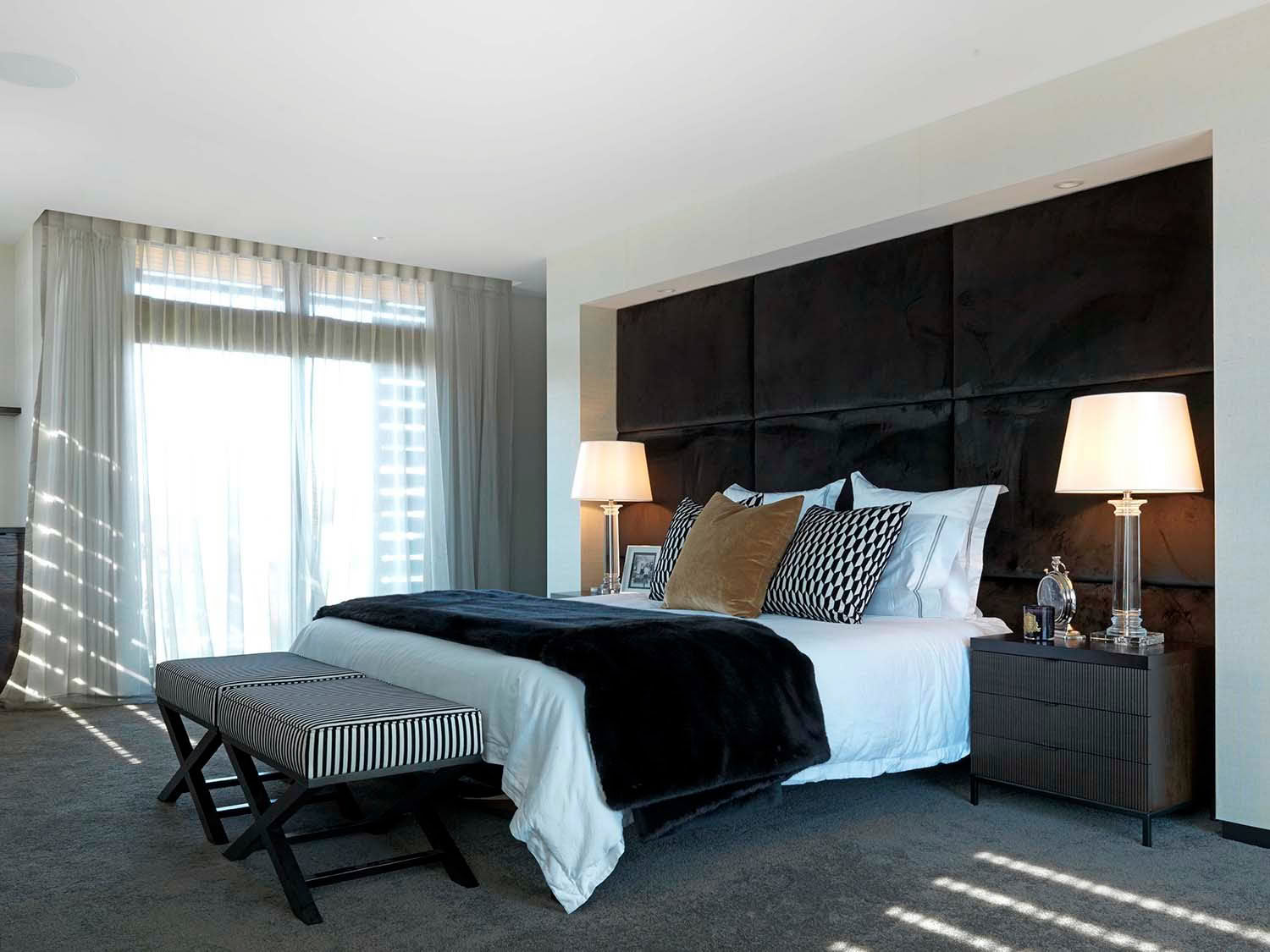 Rather than following trends, each space is curated with a timeless sensibility—layering rich textures, bespoke furnishings, and tailored finishes to evoke warmth and sophistication. Upholstered bedheads become architectural features, while custom cabinetry and thoughtfully selected materials work together to create a seamless, cohesive environment. The result is a bedroom that feels both elevated and effortlessly inviting.
