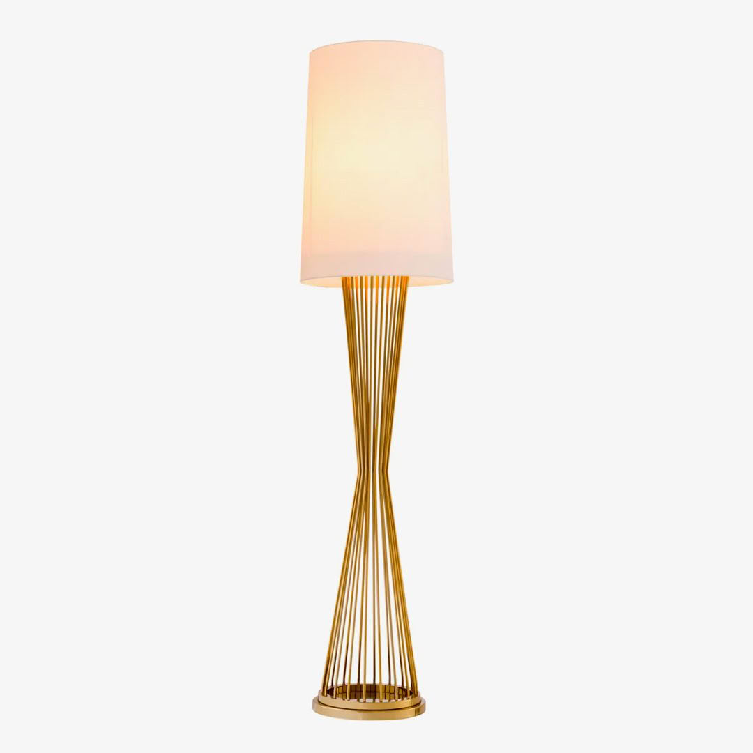 Gold floor lamp with white shade