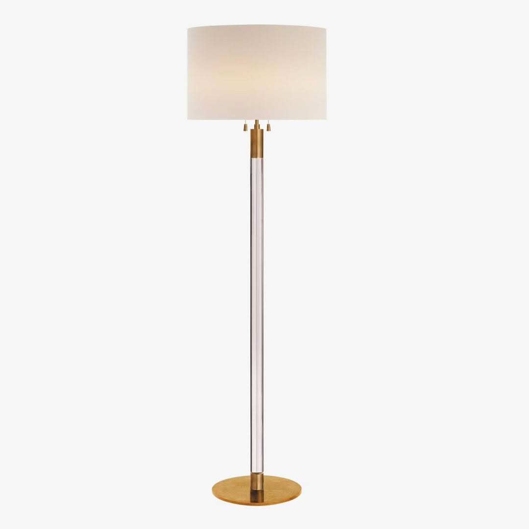 Elegant tall floor lamp with white shade and gold base