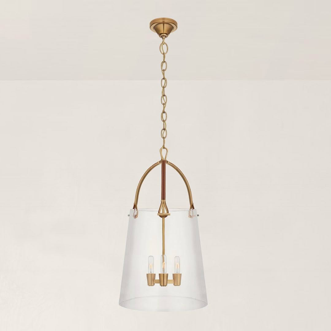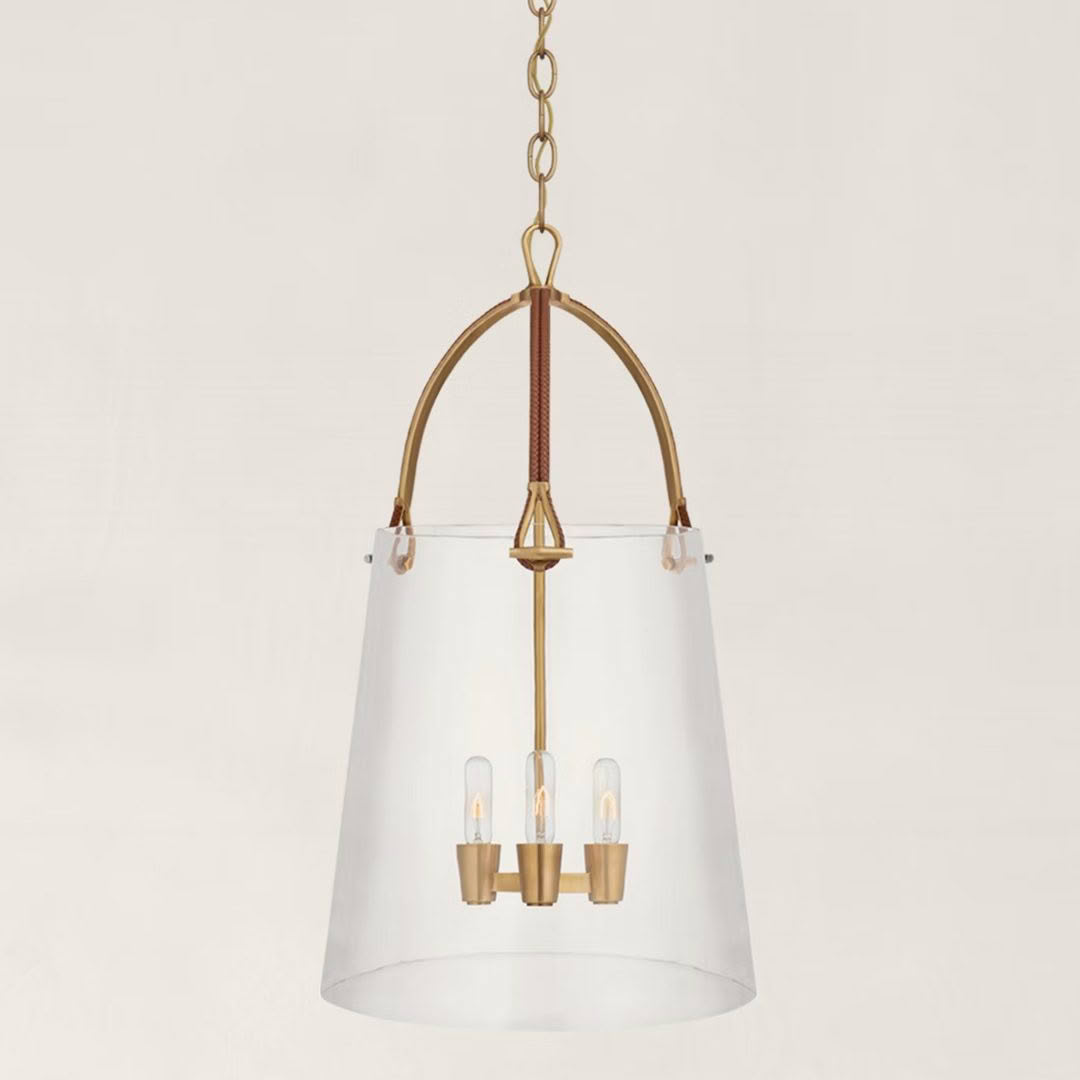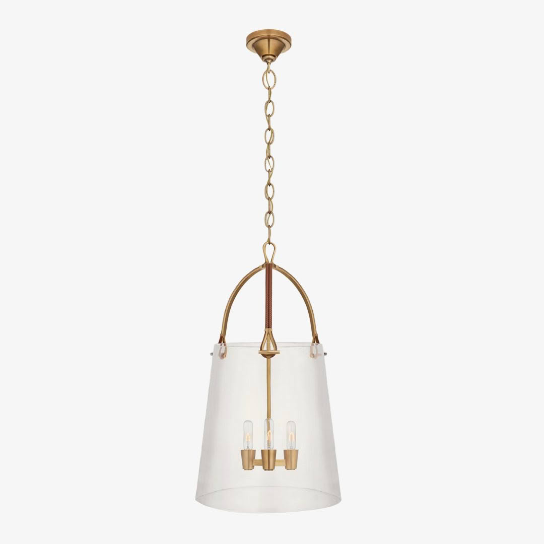 Recalling Ralph Lauren’s equestrian heritage, the Julian lantern is expertly crafted from solid brass and showcases signature stirrup-inspired hardware and supple leather trim with an exquisite braided texture. The refined form is illuminated by three bulbs encased within a handblown glass shade.