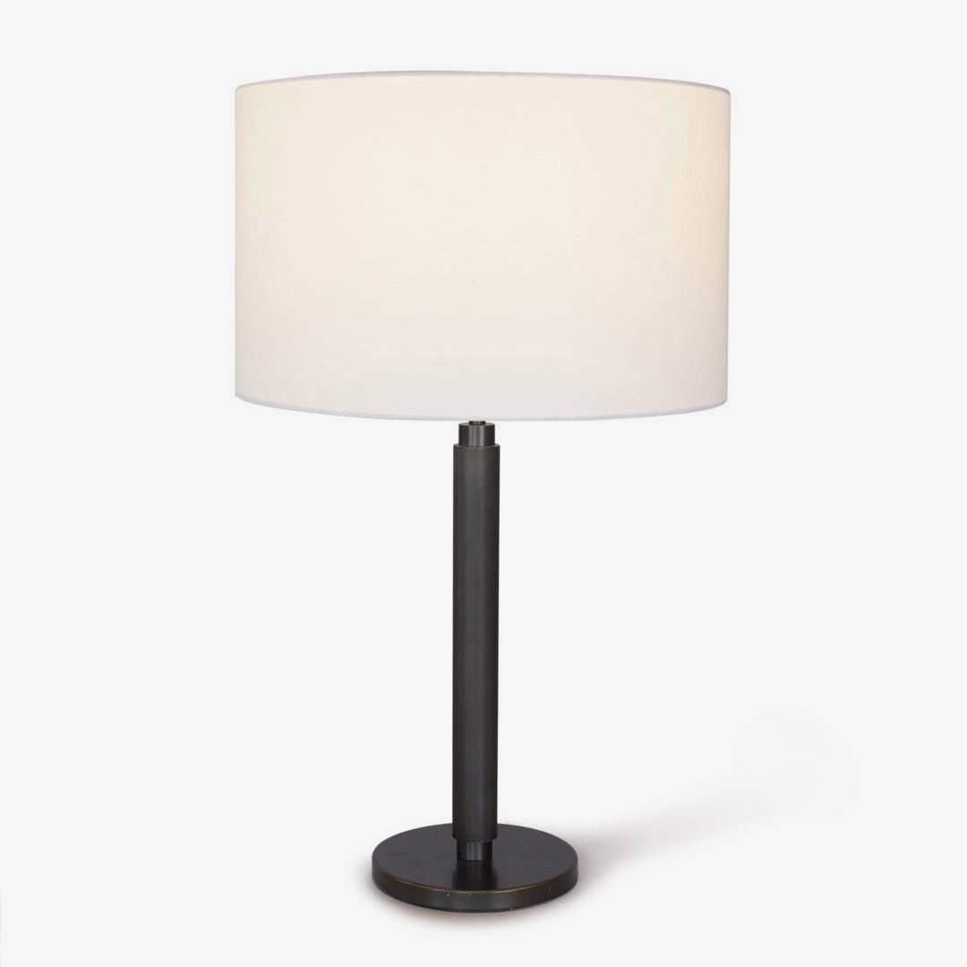 Dark metallic table lamp with white shade