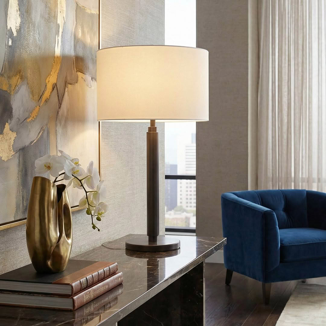 Elegant table lamp on marble base in cozy room setting