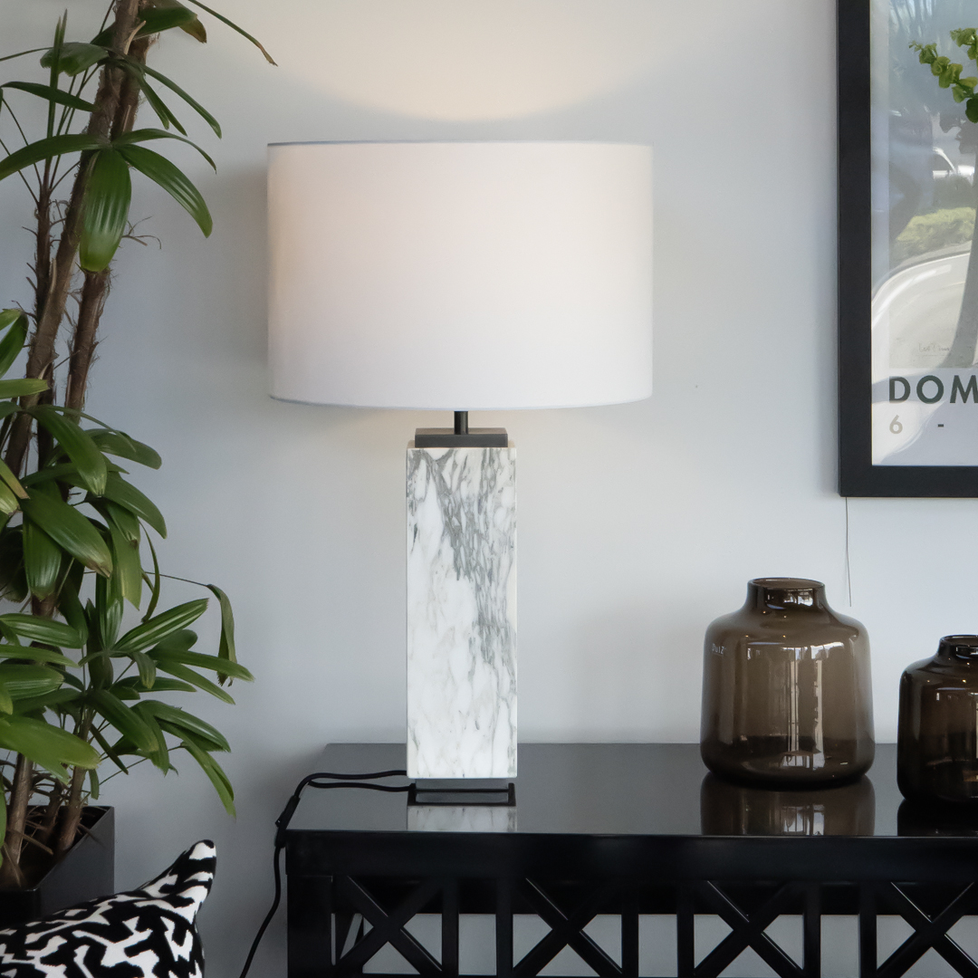 The Roma Table Lamp is a study in timeless materiality and sculptural form. Featuring a solid Arabescato marble base, each piece is naturally unique, defined by soft grey veining that brings depth and character. Finished with warm bronze metal detailing, the lamp creates a refined balance between classical stone and contemporary design. Perfect for bedside tables, consoles, or living spaces, Roma adds a subtle statement of understated luxury.