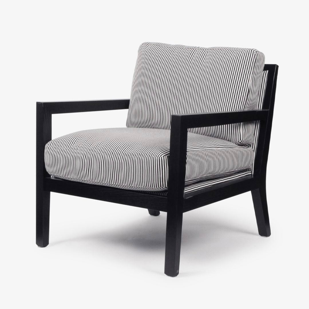 Elegant black leather chair with wooden arms and legs
