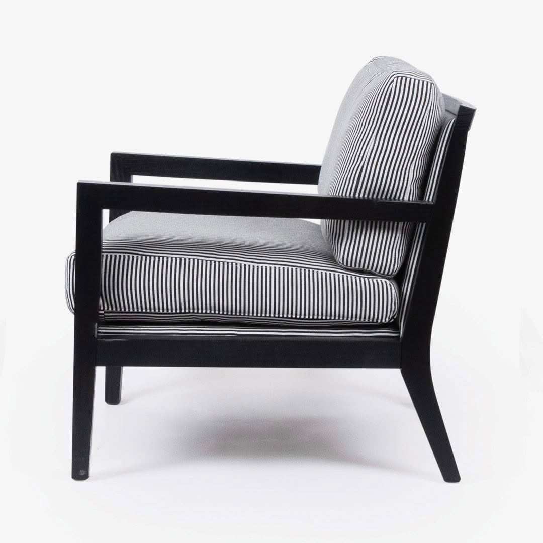 Elegant white upholstered armchair with dark wood trimDetailed carving on dark wood sofa leg.