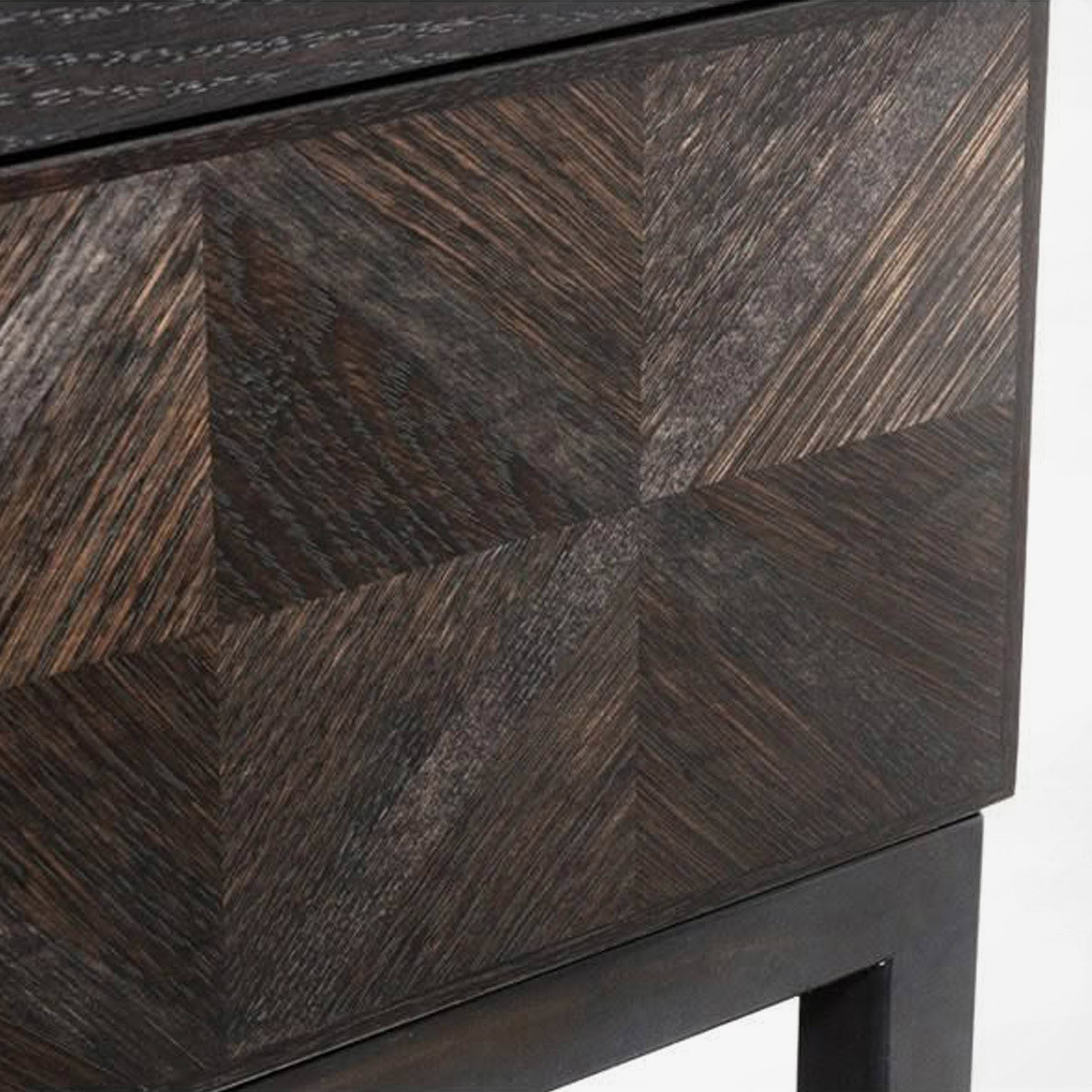 CANNES CONSOLE Table Made from Solid American Oak, Parquet with Ebonised Walnut Inlay, with Black wax steel base.