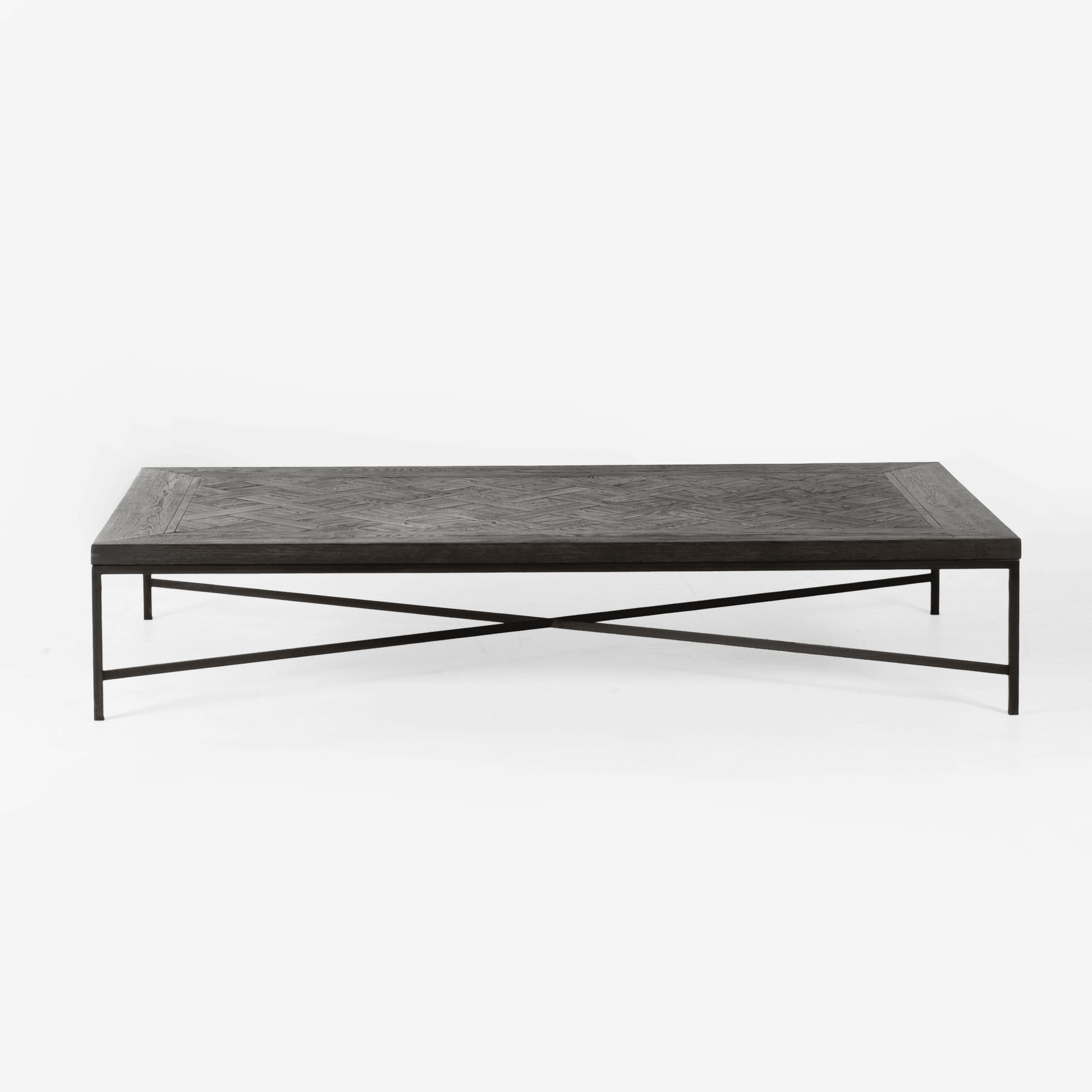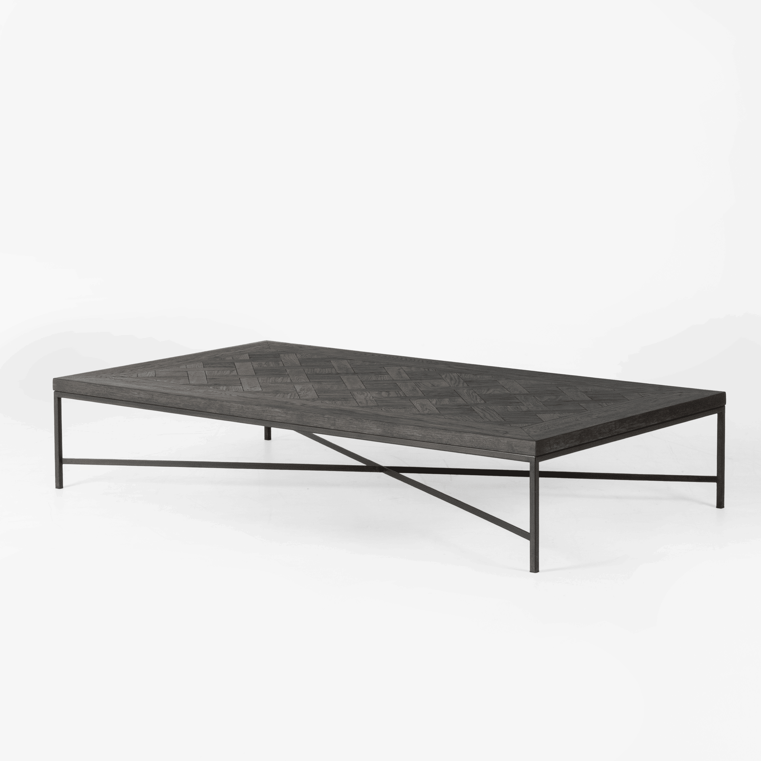 Dark wood coffee table with metal frameModern dark wood coffee table with metal frame