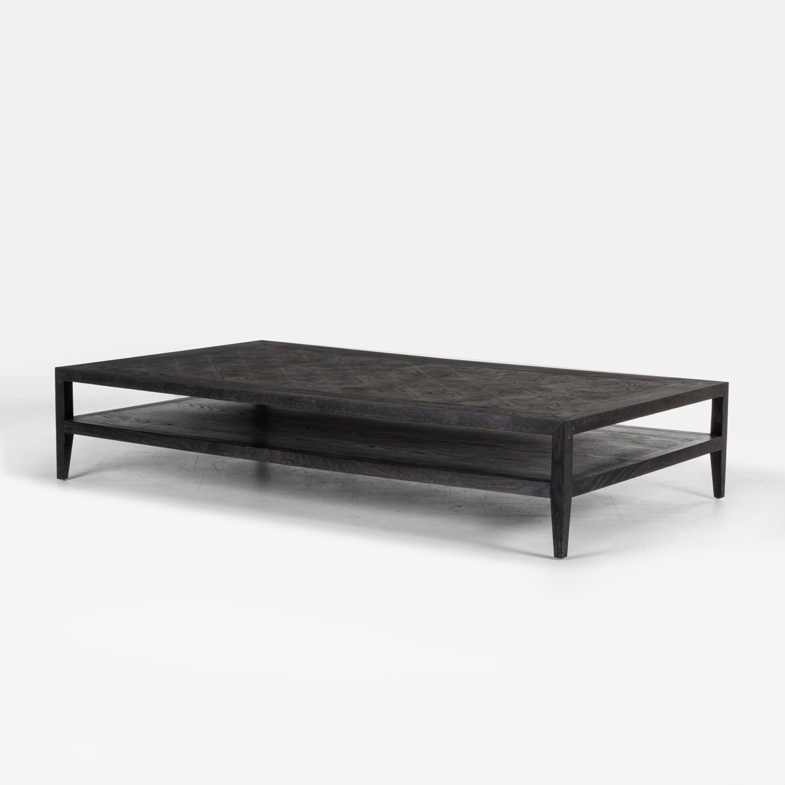 Low-profile modern black coffee tableLow-profile dark wood coffee table