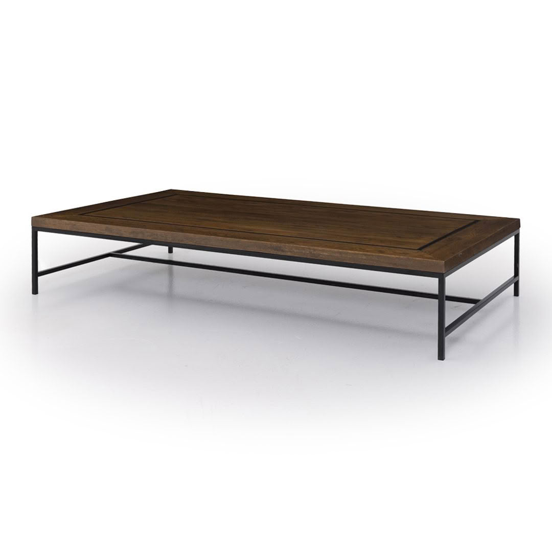 Modern wooden coffee table with black metal baseModern low-profile wooden coffee table with metal base