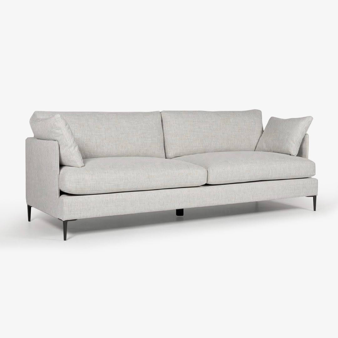 Modern gray sectional sofa with gold legsElegant gray sofa with cushions and gold accents