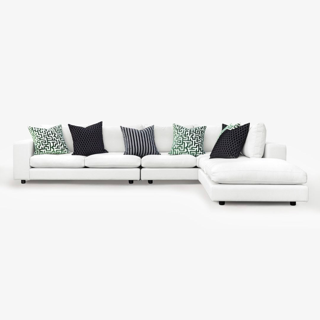 Beige modern sofa with cushions on white backgroundModern gray sofa with cushions on white background