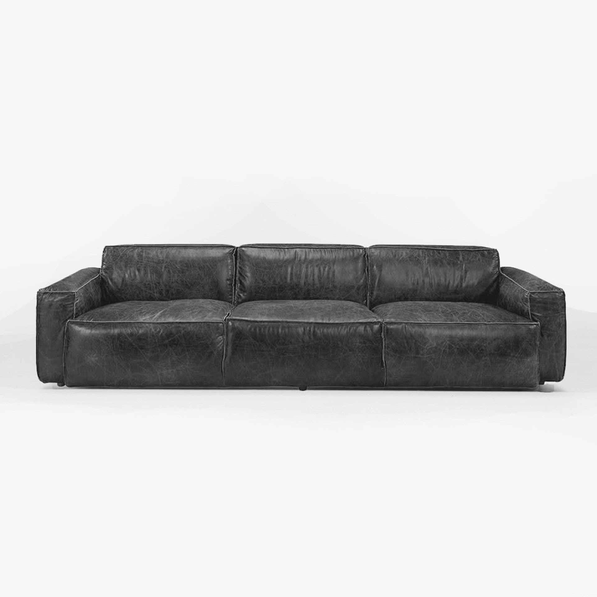 Close-up of a tan leather sofa detail