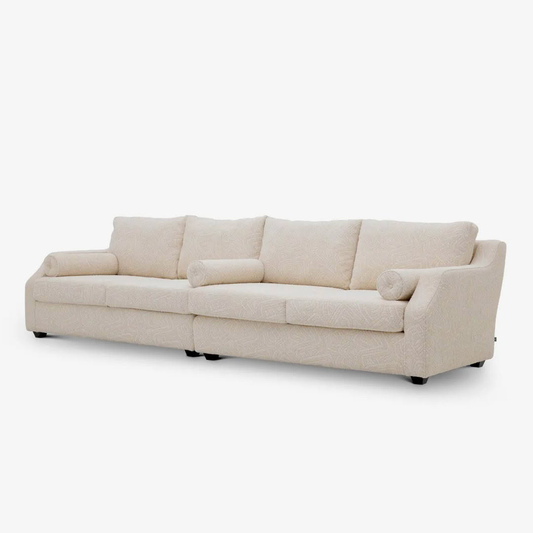 A masterpiece in modern craftsmanship, the Eichholtz Bellavoir Sofa is designed for comfort and opulence. This stylish interior design solution, in sumptuous and inviting camari cream fabric, features three roll cushions. This modular piece can be separated into smaller seats for multiple styling options. Pair this Eichholtz sofa with a patterned chair or stick to the neutral, minimalist aesthetic–the possibilities are endless.