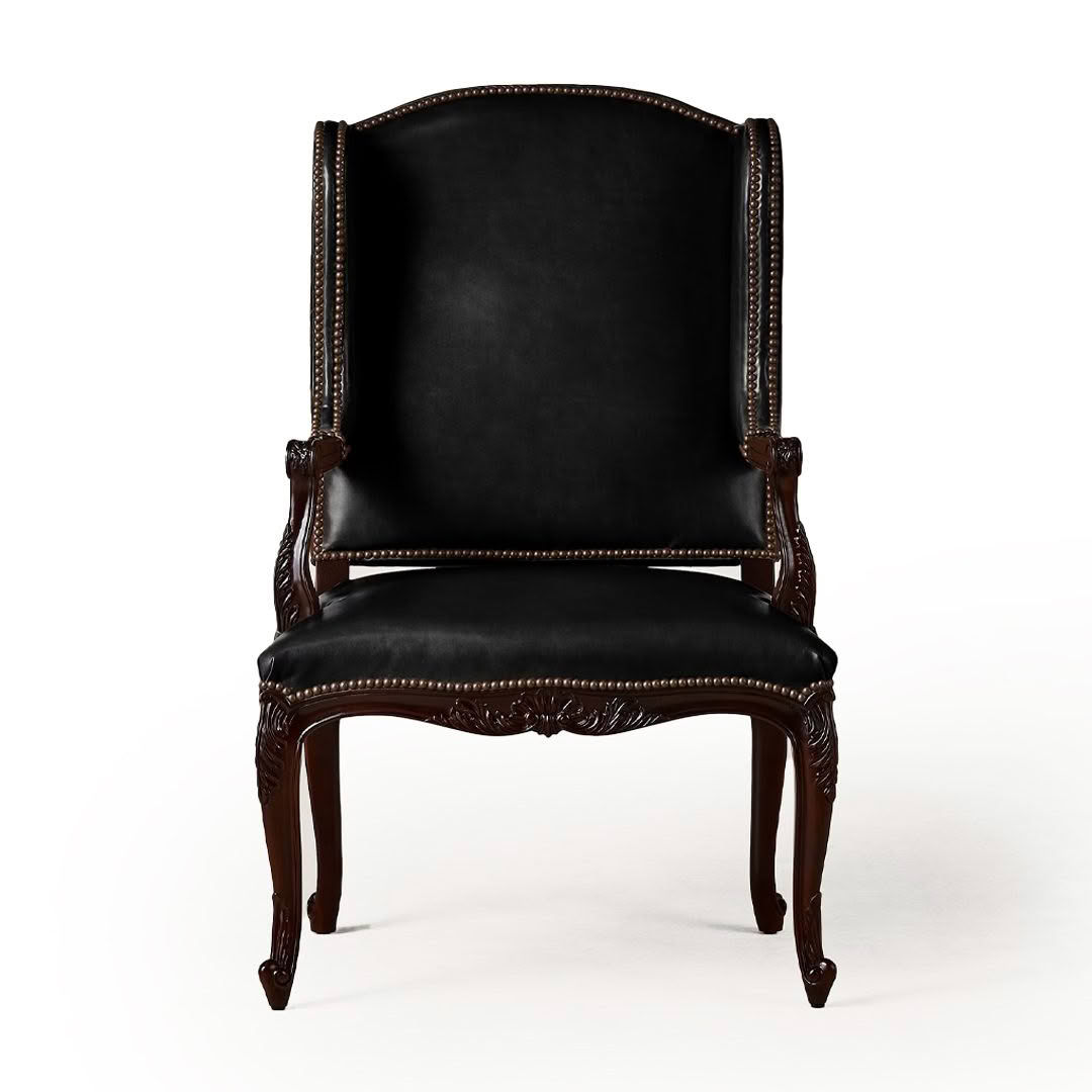 Glass coffee table on ornate orange carpet with teapot setMinimalist office with abstract blue painting and wooden chair