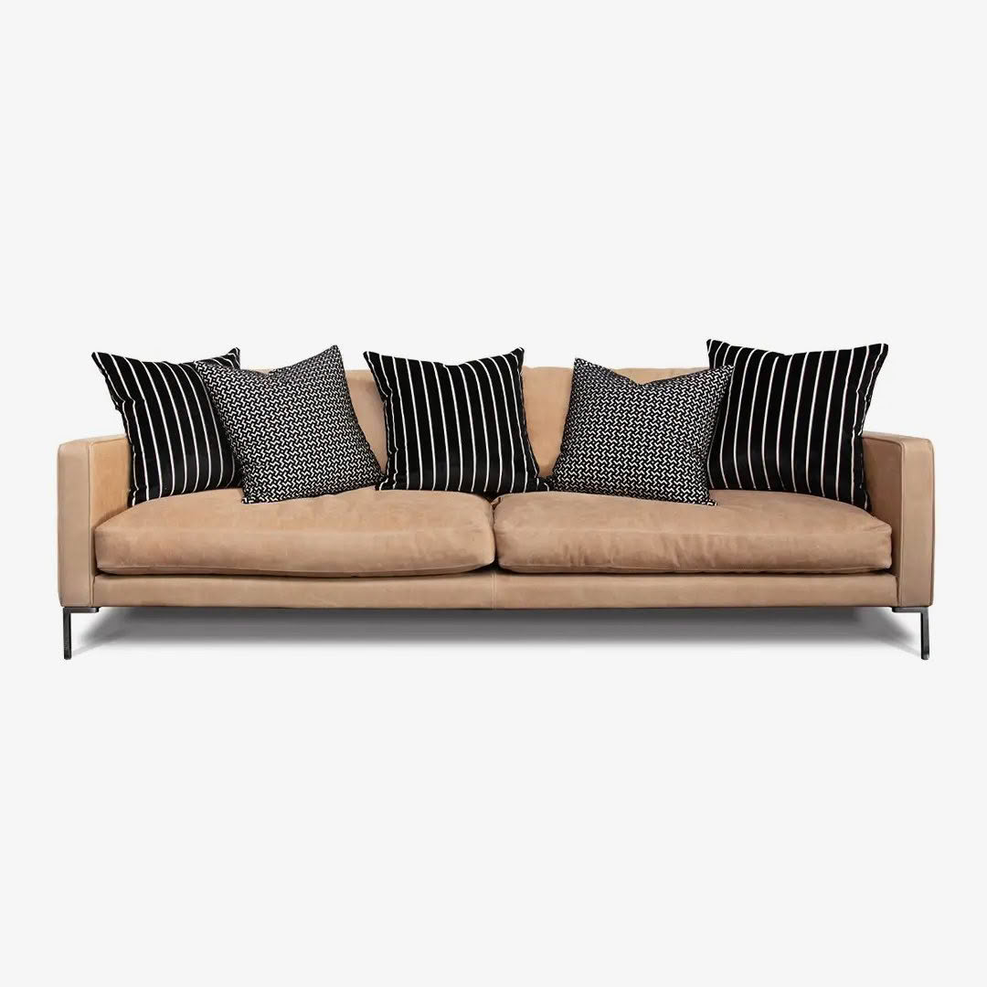 Our curated collection of sofas is one of the most comprehensive anywhere, made exclusively in New Zealand. Our expert artisans can custom-make your order to your bespoke requirements through size, configuration and your personal choice of leathers and exquisite fabrics from the finest mills around the world. Generous in proportion and scale, they feature sumptuous feather seat and back cushions and unique metal finishes.