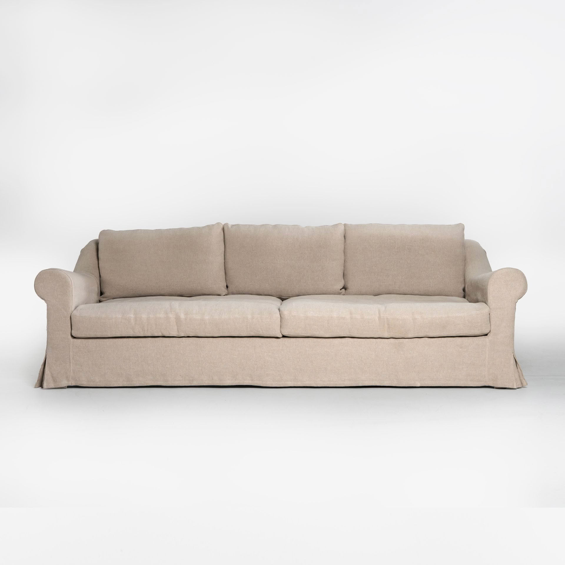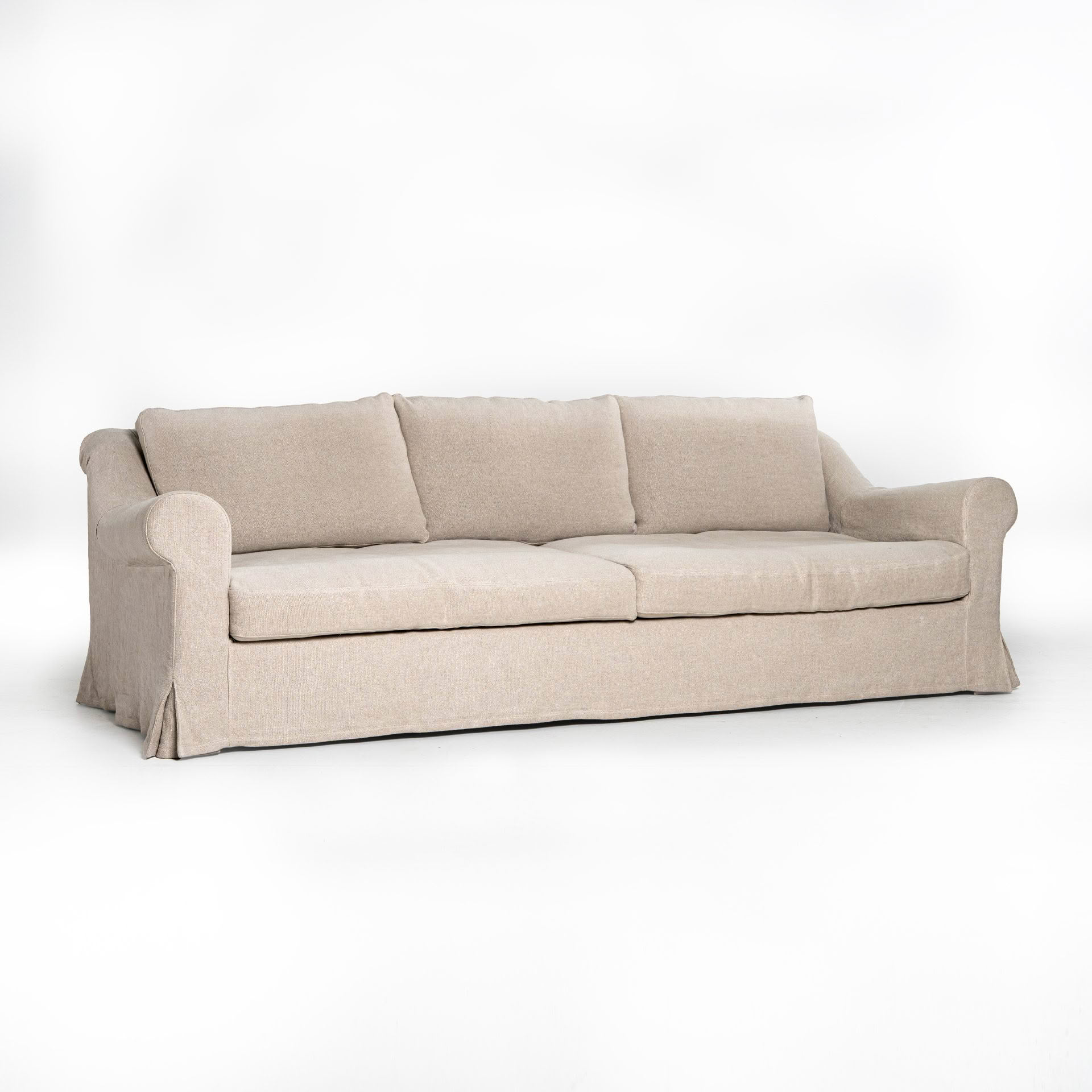 Timeless design with slip cover and rolled arm, with feather/fibre seat and back cushions to give a relaxed look. Made in your choice of fabric.